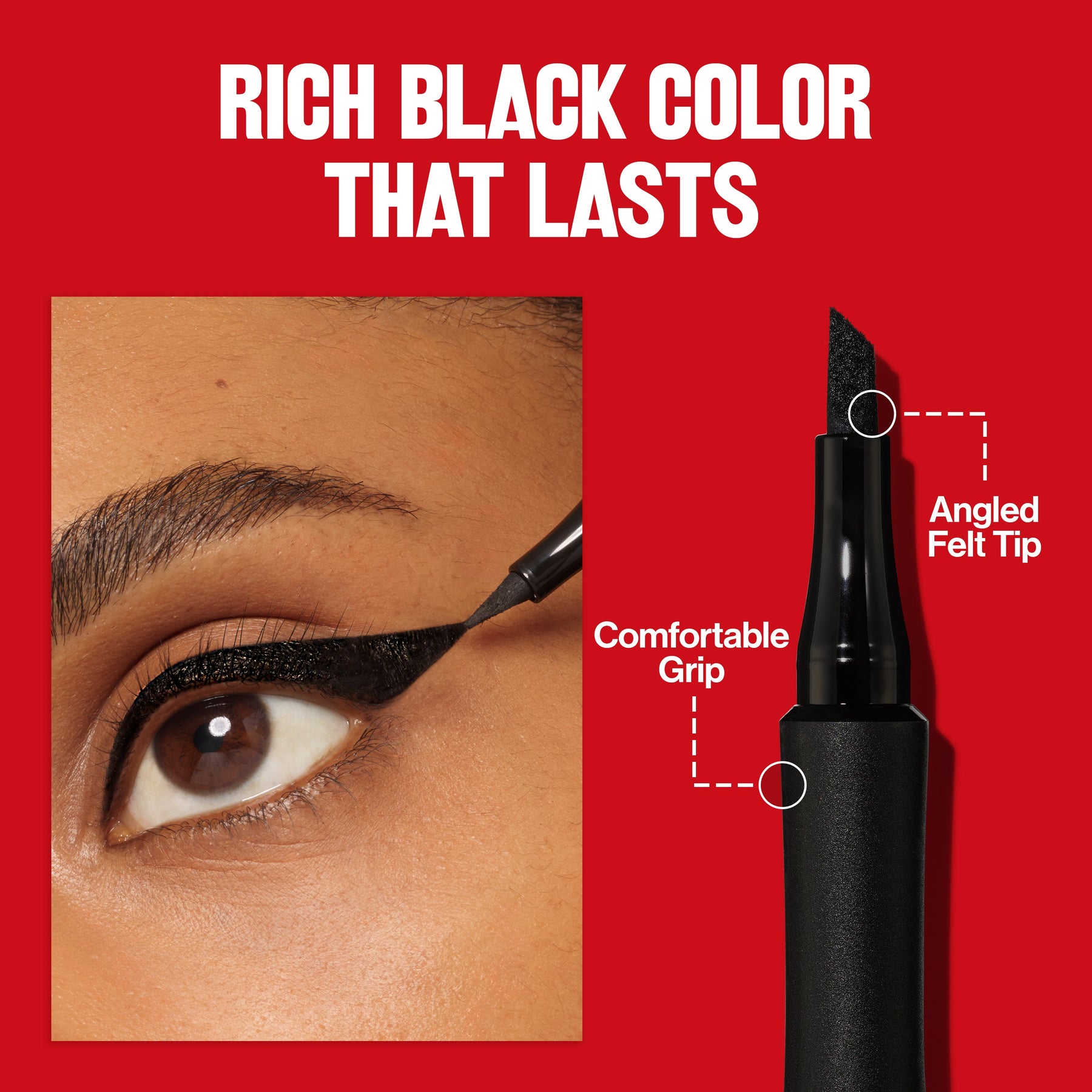 Revlon ColorStay Wing Line Liquid Liner lets you express yourself in unlimited ways. With an angled felt tip that easily creates a winged look, you can create an endless range of personalized lines with ease and control—whether you’re an expert or beginner.